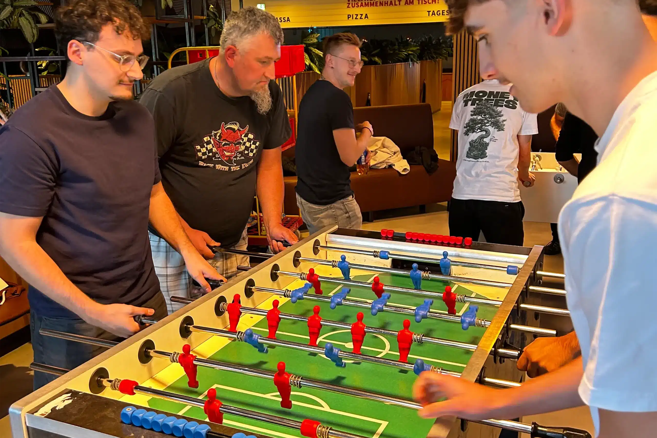 Am Mittwochabend wurden Bälle gekickt, Tore geschossen und jede Menge gejubelt. In zufällig ausgelosten Teams traten die 16 Spieler gegeneinander an. Folgende Sachgewinne gab es zu erspielen: